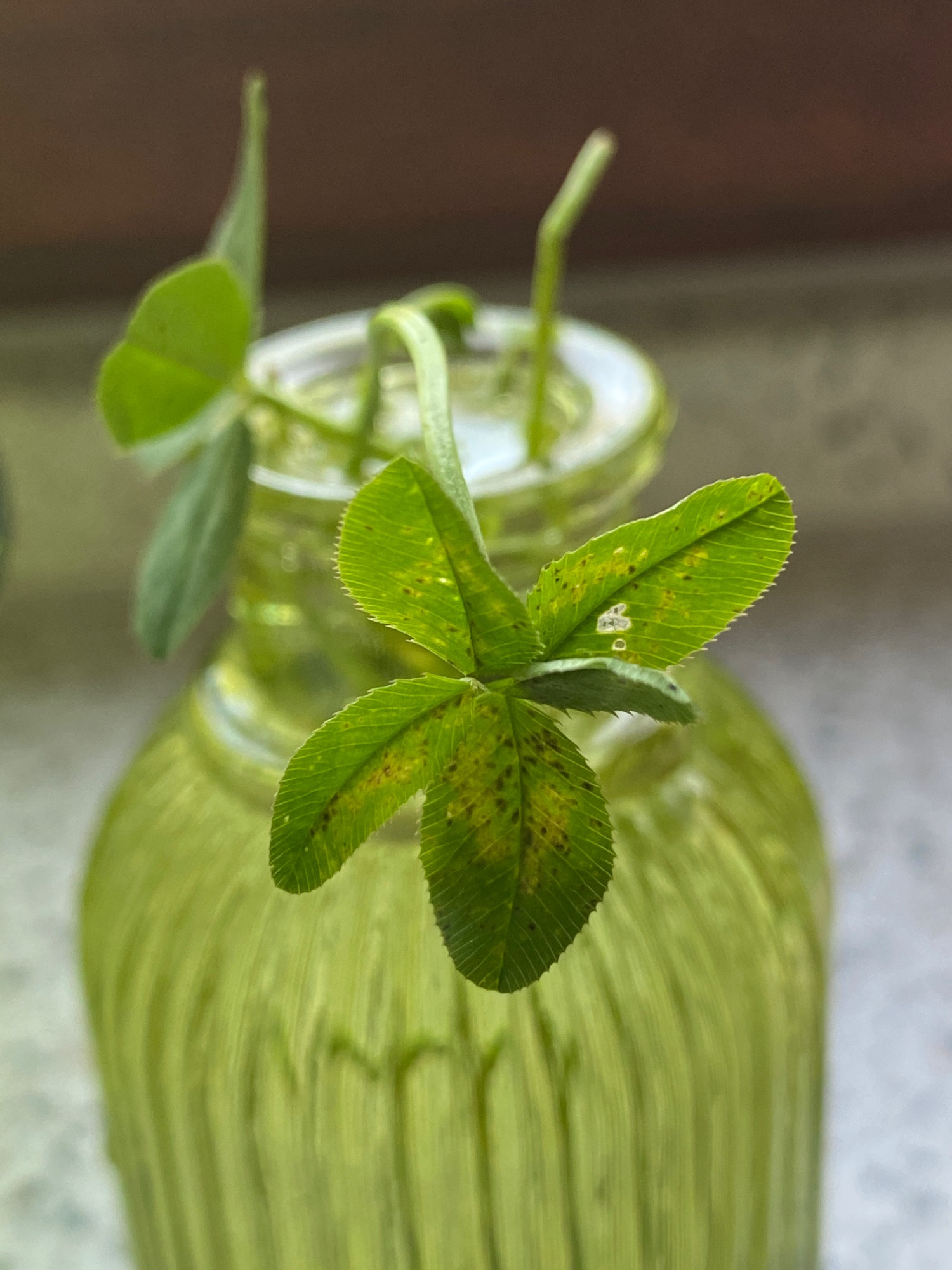 Ich hab das erste Mal in meinem Leben ein vierblättriges Kleeblatt gefunden, und dann gleich noch zwei, und dann noch ein fünfblättriges.