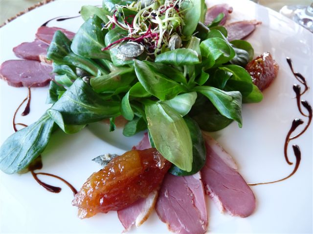 ich war auswärts, es gab:Nüsslisalat mit Entenbrust und Aprikosen-Chutney