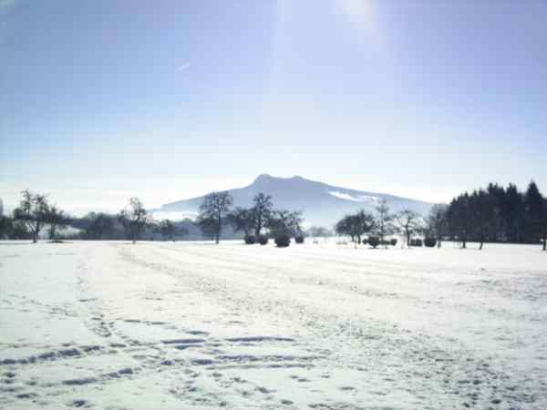 Wir sind nun ca. 50m Vom Haus. Die Sicht auf unseren ersten Hausberg, den Hohen Stoffel.