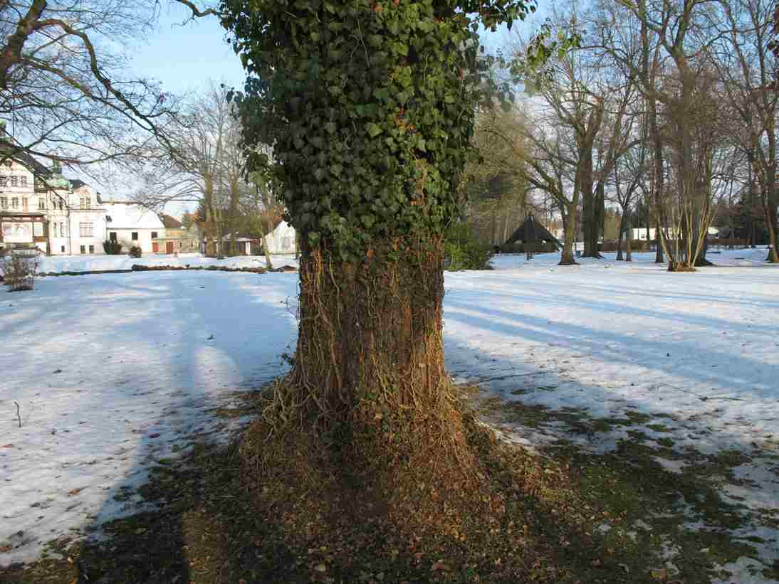 Hier ein Bild aus unserem Park. Dass die Rehe sich derart am Efeu vergreifen, habe ich noch nie beobachtet. Der Hunger muss gewaltig gewesen sein.