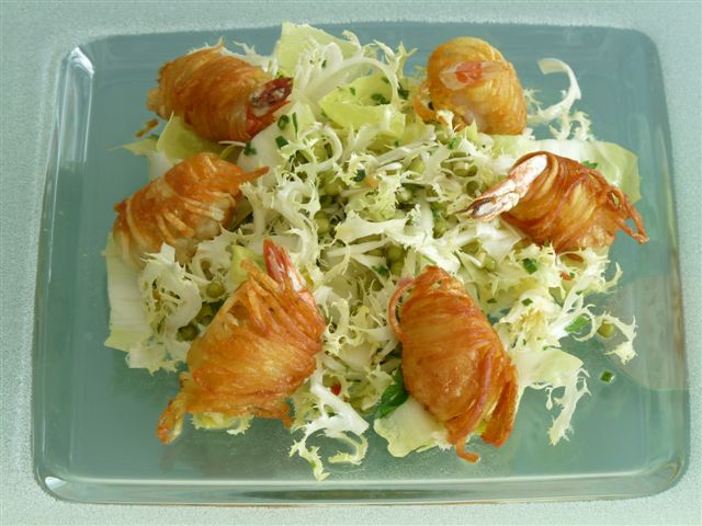 Jay, beide Gerichte sehen lecker aus :DIch übe fleissig mit meinem Gemüsefäden-Schneider ;DGarnelen im Kartoffelmanten gebraten mit Salat