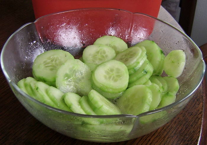 Dazu gabs heute - nicht wie sonst immer Eissalat sondern - einen Gurkensalat.