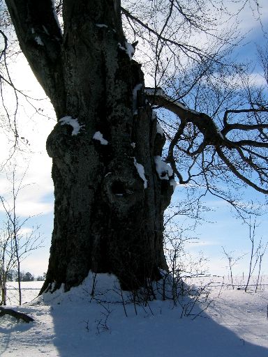 ) auf den Boden zu legen, ein Stück unterhalb der Anhöhe, auf der der Baum steht, und von der Basis des Baums so weit am Stamm entlang in die Höhe/in die Krone zu schauen, wie's die Kamera (mit leichtem Weitwinkelobjektiv?) irgend zulässt. Ich könnte mir gut vorstellen, dass das "gotisch" erhabene Höhen-Schwindelgefühl, das Brigitte anspricht, sich dann tatsächlich einstellt - beim jetzigen Bild kann ich's nur ahnen, aber nicht empfinden.Ein herrlicher Baum. Der ist garantiert auch fotogen, wenn der Schnee getaut ist; vielleicht kannst du dann ja mal an einem dramatischen Sonne-Wolken-Tag einen Streifzug mit Kamera plus Isomatte versuchen
