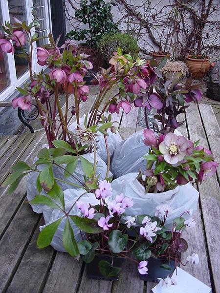 Es gab auch echte Schnäppchen. Dieses Beet will Frau Schmiemann "leer machen" und jede Helleborus kostet dort 5,-Euro!
