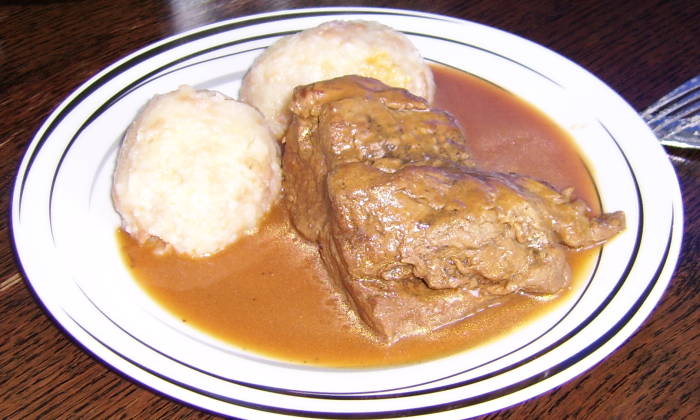 Heute gabs einen Rinderbraten mit Semmelknödl. Heute eine ordentliche Männerportion