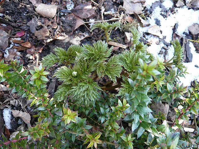 Blüht zwar noch nicht, aber als ich heute das Adonis amurensis (?) gesehen habe, habe ich mich gefreut, denn ich war mir nicht mehr sicher wo es den genau steht und habe ständig etwa 50 cm nebendran den Boden abgesucht! - Und die Pflanze ist deutlich gewachsen!