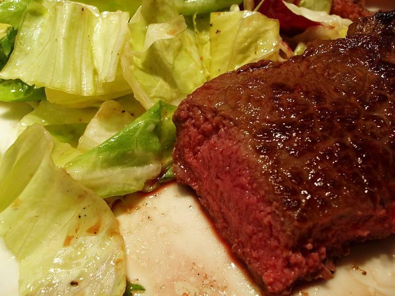wir haben schnellsalat und ein kleines roastbeefsteak gegessen.