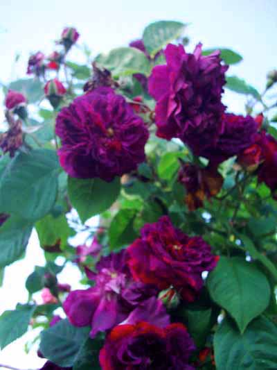 ...Die SdAL auf Sonnenscheins Fotos ist m.E. aber auch keine. - Echt schade, wenn es sie bei Guillot nun auch nicht mehr im Original gäbe :-\Es gibt ja (zum Glück noch) sehr viele, rote Remontant Rosen und sie nach Fotos zuzuordnen ist immer schwer.Mein erster Gedanke war Souvenir du Docteur Jamain, von daher wäre eine Vergleichspflanzung sicher gut. - Läßt uns dann auch noch die Hoffnung, daß sich bei Guillot nur jemand vergriffen und das falsche Souvenir aus dem Fach gezogen hat...Ich hab ein (ganz schlechtes, sorry!) Foto gefunden, das ich mal von EaB bei Klara Meins gemacht hab.Das Exemplar im Park ist die Spende einer Freundin und erst seit letztem Frühjahr da. Ich bin aber ziemlich sicher, daß es sich bei allen dreien (also auch deinem) um Erinnerung an Brod handelt: Die sich flach zurückbiegenden Blüten mit dem Knopfauge, das relativ breite Laub und die fast waagerecht von den Basistrieben weg wachsenden Seitentriebe sind schon recht typisch.Vom Umpflanzen her (das arme Ding mußte im Herbst gleich nochmal umziehen, zu den Pinkroten passte es üüüüberhaupt nicht)erinnere ich mich auch noch an recht bösartige Stacheln.Diesen ommer werd ich´s nochmal genauer angucken.