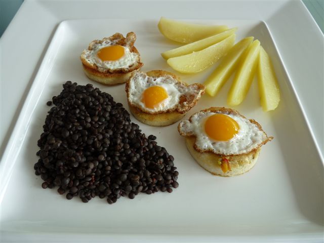 erst gab es eine Gurkensuppe mit Lachsdanach Tofu mit Wachteleier, Senflinsen und Kartoffeln