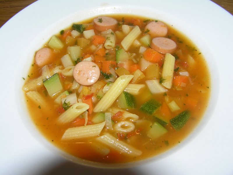 die taschen kenne ich auch, sind die aber nicht mit frischkäsefüllung?bei uns gabs gestern gemüsesuppe mit allem möglichen. hühnerbrühe, tomatensaft, chili, steckrübe, petersilienwurzel, karotte, petersilie, zucchini, minipenne und würstchen.dazu ne brezel.