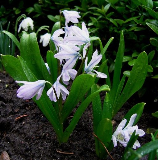 Dies sind die 'hellblauen' die ich im letzten Frühjahr aus dem anderen Garten bei mir angesiedelt habe. Es schauen nur 'einfache' dünne Spitzen aus der Erde, genau wie bei den bifolia rosea, die nur ein wenig weiter sind. Die Scilla siberica/sibirica sind noch weiter zurück. Man sieht bisher nur ein paar ganz kleine grüne Spitzen.
