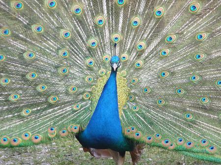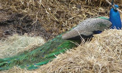 Hallo allerseits,ich wohne ja in Freiburg, neulich waren wir mal wieder im Mundenhof, das ist ein sehr großes weitläufiges Tiergehege mit noch ein paar Extras, es liegt fast direkt an der Autobahnausfahrt Freiburg-Mitte an der A 5. Und ich dachte, wenn dann wieder die Reisenden auf der A5 eine Pause machen, geht doch nicht in die Autobahnraststätte sondern dahin! Wenn man die A5 bei der Ausfahrt Freiburg-Mitte Richtung Freiburg verläßt kommt auf dem Autobahnzubringer sofort wieder eine Ausfahrt und die heißt schon Mundenhof. Man sieht eine große Funkantennenanlage mit mehreren dünnen Masten, dann ist man richtig. Aber es ist prima ausgeschildert. Man kann auf dem offiziellen Parkplatz parken, Parkplatzgebühr 5 Euro ist praktisch der Eintritt. Oder, unser Geheimtipp: weiterfahren um die Anlage herum bis zur Gastronomie. Dort gibt es auch einige Parkplätze, man ist dann schon viel näher am Spielplatz, den interessantesten Tieren und vor allem an der Gastronomie. Diese Wirtschaft ist ideal für Familien. Es schmeckt sehr gut, ist günstig, es geht schnell, eine riesige Bierbank-Landschaft im Freien bietet immer Platz, drinnen waren wir nur selten, falls es einmal geschüttet hat, geht aber auch. Und ein Kinderspielplatz ist auch da. Nicht weit sind die Esel, das Haus mit den Fischaquarien, die Pferde, ein kleines nostalgisches Kinderkarussel, das an Wochenenden und Feiertagen auf hat, die Bären, die Erdmännchen, die Affen, die Eulen, Die Vogelstrauße, die Ziegen, und die Meerschweinchen und Kaninchen. Wenn man ein wenig mehr Zeit hat, kann man wieder in Richtung großer Hauptparkplatz gehen und noch einige andere Tiere sehen: Kamele, Bisons, Lamas, noch mehr Esel und Ziegen und ein Schau-Bienenvolk. Die Kinder mögen auch alle gerne einen riesigen Drachen aus Beton, der innen hohl ist. In und auf dem kann toll gespielt werden. Zur Begrüßung möchte ich ein Pfauenbild zeigen, die Nahaufnahme von einem Pfau habe ich aber gestern von einem anderen Freiburger Pfau gemacht: