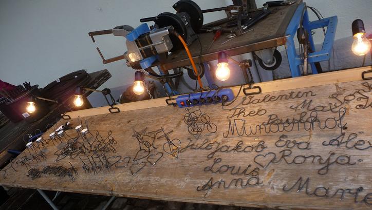 Ein Kunsthandwerker war auch da, der macht nette Sachen, auf sofort und auf Wunsch und nicht teuer (dauerhafte Rosenbeschriftung??