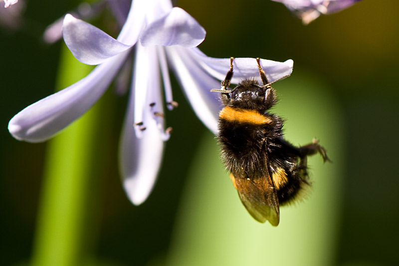 Diese Hummel vollführte seltsame Turnübungen an der Agapanthusblüte, es sah aus, als ob sie sich reinigen wollte. Ich glaube es ging ihr nicht gut.
