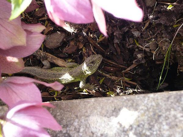 Bei uns sind die Eidechsen schon eine ganze Weile munter.Vor zwei Wochen gemachtes Bild zeigt der kleine Drachen in Mitten meines Bauschutthügel - mindestens für etwas ist der gut!