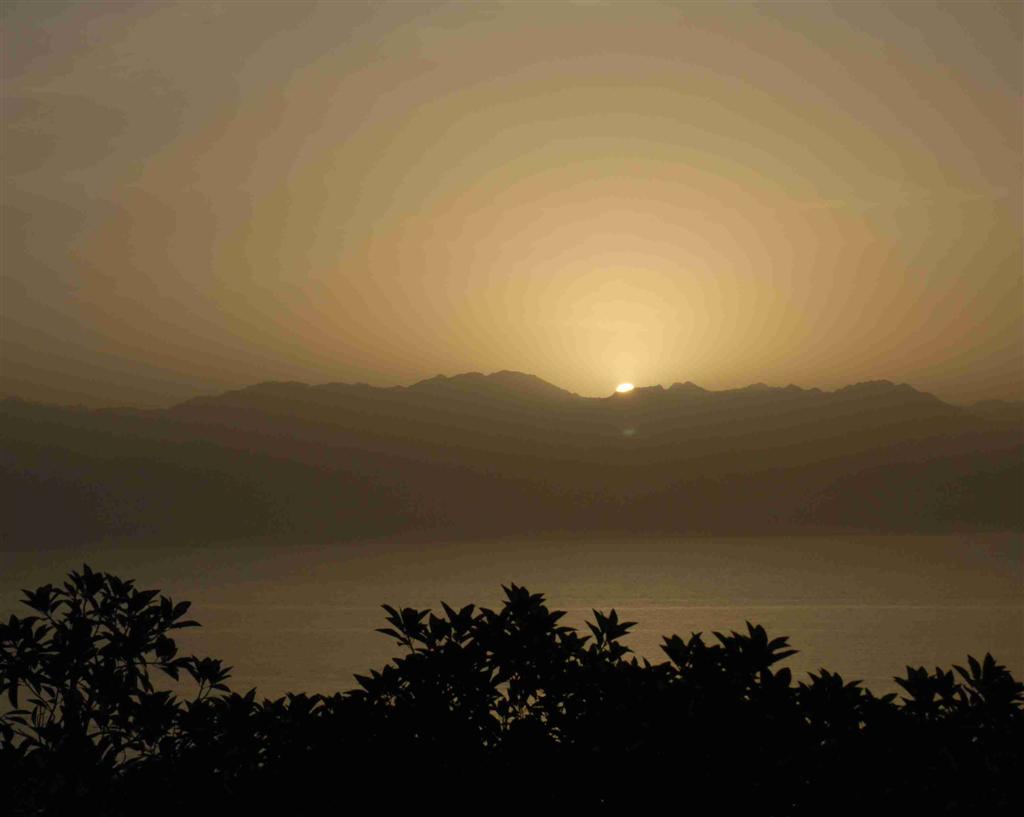Sonnenaufgang in Eilat. wir mussten früh aufstehen, denn um 8 Uhr ging es schon über die Grenze nach Jordanien. Eilat ist eine , nach meiner Ansicht potthässliche Stadt. Interessannt vielleicht für Taucher , aber ansonsten , vergiss es. Unser Hotel lag dann auch ganz weit weg vom Tumult, keinen Kilometer vor der ägyptischen Grenze, man sah den Stacheldraht