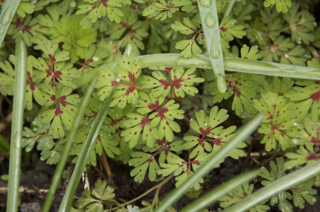 Ich bin heute während einer Regenpause mit der Kamera in den Garten gegangen. Hier Fotos einer Spontankreuzung zweier Corydalis-Arten: C. elata x C. flexuosa. Die roten Blattzentren hat C. flexuosa mit in die Ehe gebracht. Auch die Blätter sehen eher nach C. flexuosa aus. Die Hybride zieht gar nicht ein, und nach feuchteren Sommern hatte ich schon einige Male üppige Nachblüten im Frühherbst.