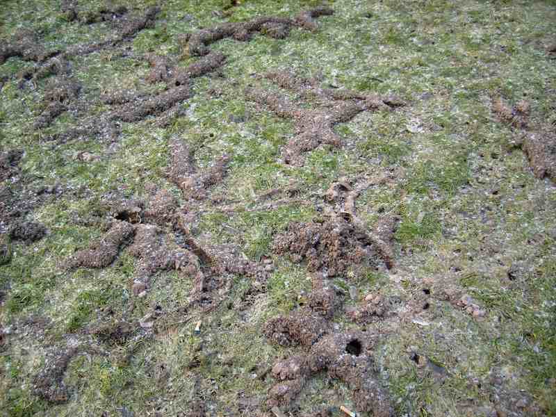 Es war jetzt fast ein Akt der Verzweifelung, wenn die frisch gepflanzte Petersilie plötzlich entweder mickerte oder spurlos verschwunden war, und bei den Nachpflanzungen war es dann genauso. Jedesmal waren darunter frische Wühlgänge - übrigens auch in den über den Winter gemulchten Gemüsebeeten, was ich noch nie hatte.Im Winter war ja unter den Schneemassen nichts zu sehen, und als der Schnee weg war, war alles zu spät und sah z.B. auf den Wegen so aus: