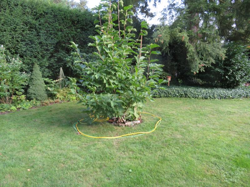 Ich hänge mich mal hier an: Unsere Lennei Alba hat (nach Jahren mit Zuwachs von max. 20 cm) dieses Jahr einen Riesenschub gemacht. Jetzt komme ich mit dem Rasenmäher nicht mehr richtig drunter und will die Baumscheibe vergrößern.