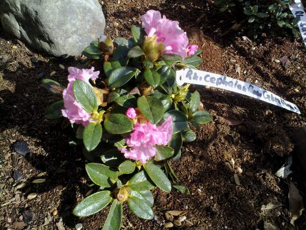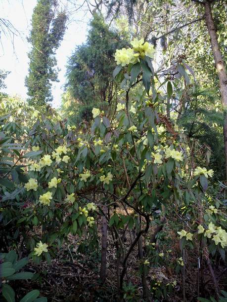 Seit ein Paar Tagen erblühen nach und nach die ersten Rhododendron,die sonst schon Anfang März blühen wie Rh.lutescens(verschiedene,hier die großblütige Form 'Bagshot Sands'),praevernum,strigollosum,lapponicum,pachytrichum.Wie Fars schon bemerkte hat der Winter bei den empfindlichen Arten zu Ausfällen oder Schäden geführt.In vier Wochen wird man genau wissen,welche Pflanzen noch wieder austreiben und den Schaden genau bemessen können.Einige Phytophtora-leichen mußte ich auch entfernen.Einige empfindliche Arten haben erstaunlicherweise den Winter überstanden,wie Rh.edgeworthii Inverleith House (direkt am Haus geschützter Standort),Rh.liliiflorum Guiz 163(zwischen Bambus gepflanzt),Rh.facetum SBEC(facetum CLD ist erfroren),Rh.elliottii.Von den 5 Rh.grande scheint wenigstens eine überlebt zu haben.Bei Rh.sinogrande und magnificum muß man abwarten.Rh.montroseanum hat überlebt,dagegen ist Rh.macabeanum SEH 027 wohl erfroren,andererseits Rh.macabeanum DT 10 ohne jeglichen Schaden.Ohne jeglichen Schaden auch alle Rh.kesangiae,falconeri,eximium,rothschildii,sinofalconeri,coriaceum,heatheriae und sidereum von Greer.Rh.basilicum TH 2937 tadellos,dagegen Rh.basilicum Gratum leicht beschädigte Blätter,aber ok.Gleiches gilt für die nahverwandte semnoides ,die braune Blattränder aufweist.Besonders negativ im Witterungsverlauf war der feuchte Herbst ohne jeglichen Frost bis zum 15.12.,der dann abrupt in eine fünftägige Frostphase überging mit bis zu -11 C am 20.12. und dann die Länge des Dauerfrost im Winter von ca.45 Tagen mit dem absoluten Minima am 26.1. von -12,5 C an ungünstiger Stelle und -9,5 C an geschützter Stelle.