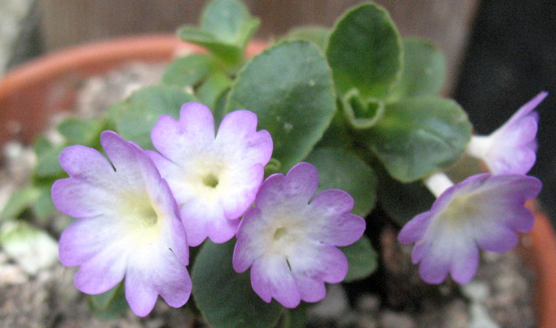 Bei Primula allionii beginnt die Blüte. Zuerst ein unbenamter schöner Sämling von Gerd Stopp.