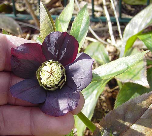 und hier nochmal die rötlichen Stängel und rosalichen Blüten.Insgesamt sind die Blüten viel zierlicher als bei H. niger und H. orientalis.