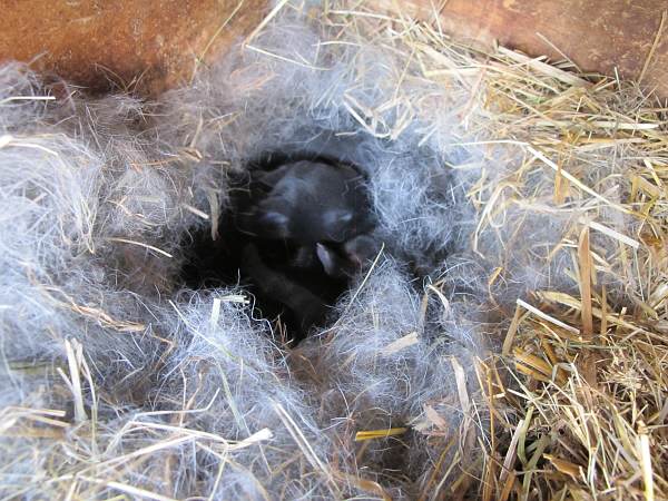 So viele Kaninchen habe ich gar nicht, 5-7 schlachtreife Tier pro Jahr reichen mir. Das ist üblicherweise ein Wurf. Nicht mehr lange, dann werden die Jungtiere aus dem Nest hoppeln.