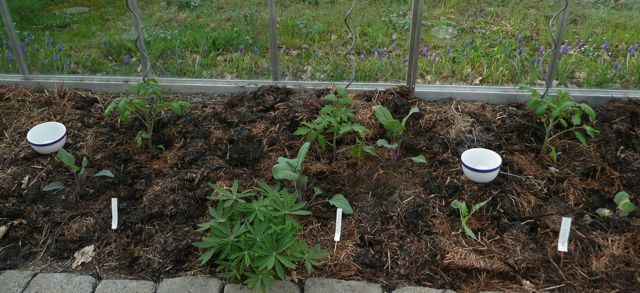 Sie hatten doch aber Temperaturen über Null vorhergesagt...Das Thermometer an der Terrasse zeigte -1°C und dort ist es meist ein bisschen wärmer. Leicht flattrig bin ich in den Garten gefahren und zum Gewächshaus gesprintet. Uff, alles gut, sie leben!