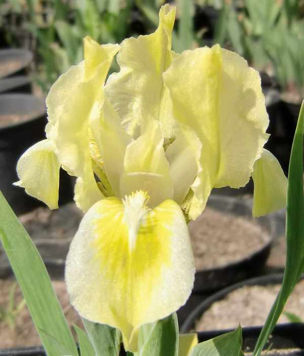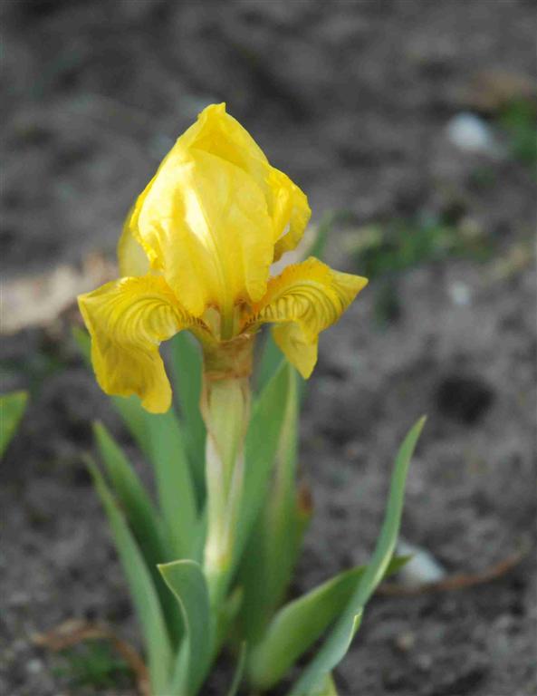 Es gibt zwar schon viele Blütenstengel , bei einigen zeigt sich auch schon die Farbe, aber die kalten Winde hier haben trotz dem sonnigen und trockenen Wetter die Entwicklung zurückgeworfen. Das ist ein Sämling von tiger honey, den sie letztes Jahr 'Zitronenkuss'getauft hat. Es ist ein Mini- mini Irischen. Letztes Jahr war da eine Blüte die aber auf einem ganz dünnen Stielchen umgefallen ist. Dieses Jahr hatte sie 4 Blüten 2 davon waren wieder umgefallen und 2 stehen noch gerade. Schade, das Laub ist nämlich nur 5 cm hoch, also eine wirklich Kleine, aber ich denke zu schwach. Dieses Jahr werde ich nur die noch niemals geblühten Iris fotografieren, sonst wird es hier wieder seitenlang. Ich hoffe mich daran zu halten.