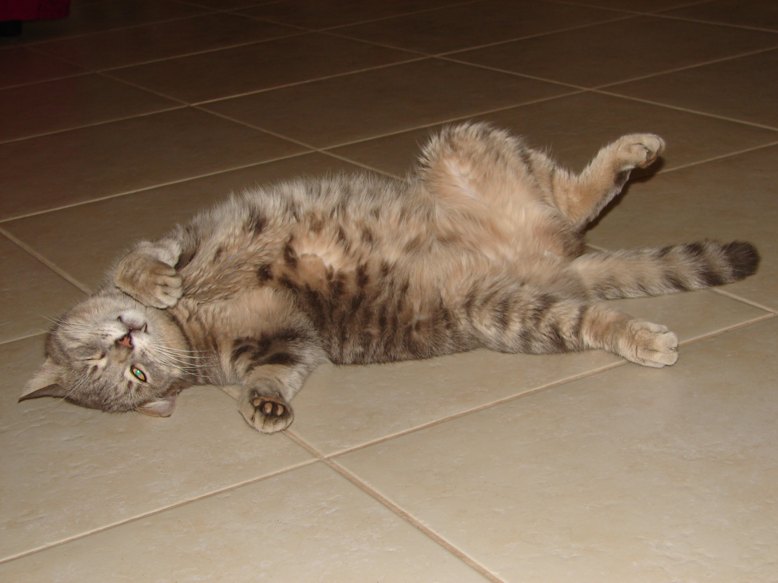 Offenbar gefällts ihm. Katzen können echt in den unmöglichsten Stellungen pennen. ::)Katrin, Deine Grautigerin ist wirklich sehr fotogen - was für ein schönes Tier! Hast Du keine Angst, daß sie mal geklaut wird?Barbara, mal wieder ein feines Bild von Tillchen - schön daß er wieder da ist. :DWie gehts dem anderen Kellerkind, Prinzessin Hasenherz?