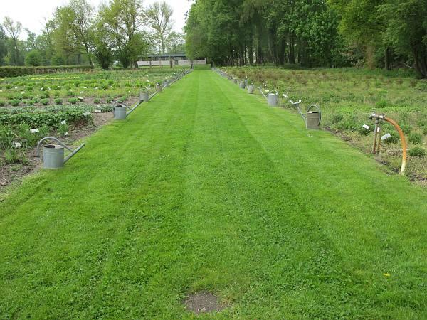 Zuerst werden die Kannen in die Mitte gelegt und die Ränder gemäht.