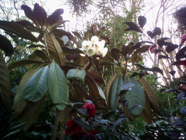 @Chris: Ist es in der Pfalz im Winter nicht sehr kalt? Ich habe eine 20jährige R. sinogrande seit 8 Jahren ausgepflanzt.Kam immer wunderbar durch den Winter,aber im letzten Winter ist das einjährige Holz erfroren und die Blätter fast alle vertrocknet.Es scheinen jetzt die Reserveblattknospen am 2jährigen Holz zu schwellen.Von R.hodgesonii hatte ich 1992 Samen in Nepal gesammelt und habe ca.12 Pflanzen.Völlig hart,hat auch schon geblüht .Habe alle Species der Falconera und Grandia Ser.inkl.der neueingeführten R.titapuriense(Neuerwerbung ,Topfkultur).Besonders erfreulich ist R.sinofalconeri,die auch im letzten Winter vollständig hart war und raketenartig wächst(2 Pflanzen,eine bereits 2,50m).Langanhaltende Temperaturen über 30C mögen alle Grßblattarten nicht.Müssen dann gut feucht gehalten werden,dann aber wiederum Phytophtora-Gefahr.R.sinogrande blühte 2007 bei mir.Die Pflanze war da ca.2,50m hoch.Abbildung dazu(von 2007!)