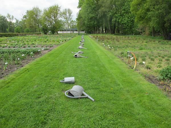 Gießkannen als Dekoration stehen nicht einfach so rum. Zumindest die dichten kann man jederzeit benutzen und etwas Mühe beim wöchentlichen Rasenmähen machen sie auch. Übrigens hat mir unser Bürgermeister letztes Wochenende hoch und heilig versprochen die Halle im Hintergrund käme noch in diesem Jahr weg.