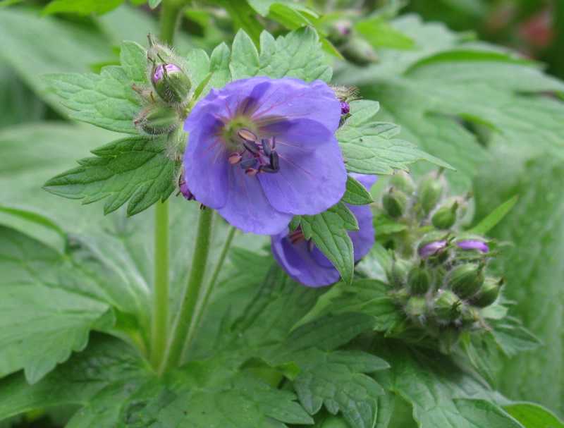 Heute haben sich die ersten Blüten geöffnet. Ich weiß, ist nicht spektakuläres - typisch Geranium eben.Ich mag G. erianthum jedoch, weil es früh blüht, zuverlässig remontiert und das Laub eine schöne Herbstfärbung annimmt. Zudem ist nicht so ein Wucherer, der sich mit seinen Rhizomen unbändig ausbreitet, mit seiner Laubmasse andere Pflanzen erdrückt oder sich durch Sämlinge invasiv ausbreitet.