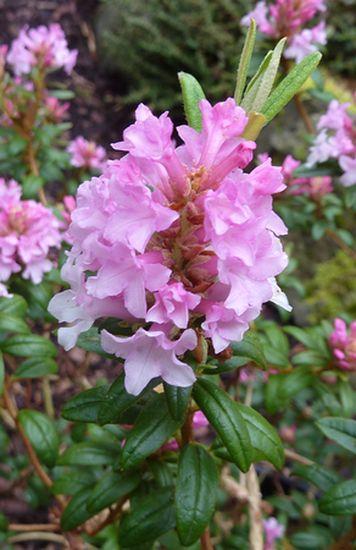 Die FCC-Form von Rh. trochostomum var. ledoides, der Klon "Collingwood Ingram".Die Blütenstutze sind nur etwa Tischtennisball-groß.