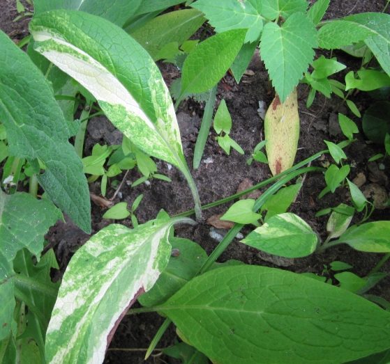 Gestern habe ich zwischen dem vielen herrlichen blauen Beinwell panaschierte Blätter entdeckt.