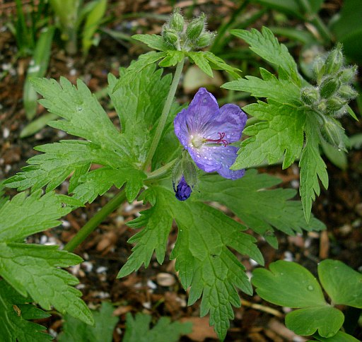 Noch eines ist aufgeblüht:Geranium maculatum 'Chatto's Form' (obwohl es immer als blassblau beschrieben wird, halte ich diese Farbe eher für zart rosalila)
