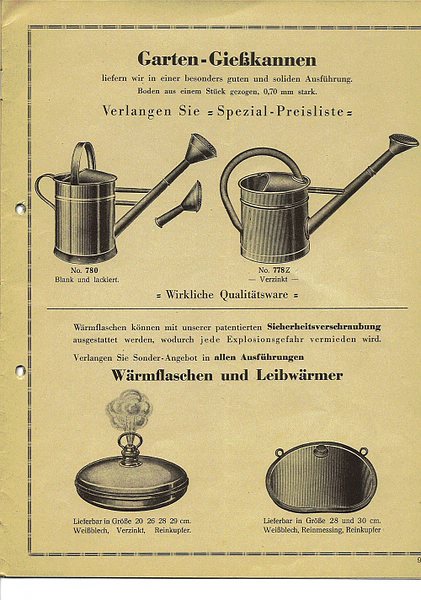 Der Inhaber dieser Internetseite www.frowo.info/ hat mir die Fotografie einer Katalogseite zur Verfügung gestellt. Herzlichen Dank.Es ist die von mir als Nr. 19 vorgestellte Kanne.Der Katalog stammt übrigens aus der Zeit um 1934.