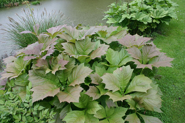 Hallo!Ist die Rodgersia aeculifolia nicht dunkler - eine solche stand nämlich neben Dieser.Ich habe im Netz gerde diese gefunden http://www.rbge.org.uk/assets/images/gardens/edinburgh/Season_highlights/May%202009/Rodgersia%20pinnata%20Irish%20Bronze%2019782369A.jpg Ciao baeckus
