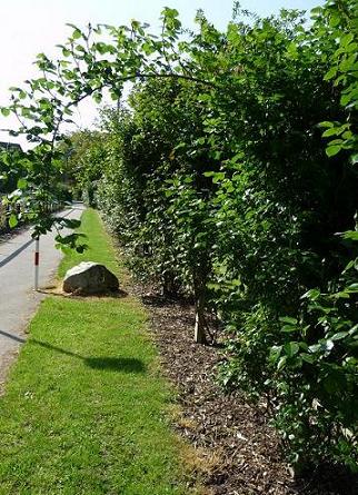 Da wo jetzt gebaut wird, waren letztes Jahr noch ramblerbewachsene Bäume, aber man kann nicht alles haben. Es gibt 2 oder 3 Parkplätze, da sind auch diese hübschen Säulen, mit u.a. 2 vor Gesundheit und Wuchskraft strotzenden Elfen.