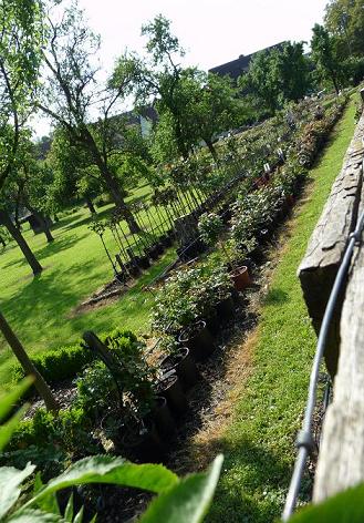 auf der anderen Wegseite ist eine malerische Obstwiese, wo ich letztes Jahr beim Rosenfest war, da wurden die Besucher bewirtet.