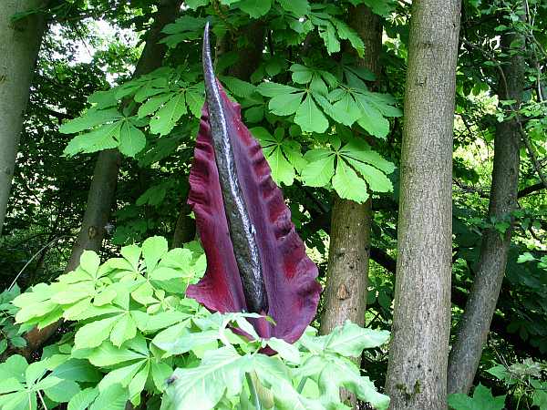 Dracunculus vulgaris ein schöner Arumbaum. Bin auf die Blüte gespannt.