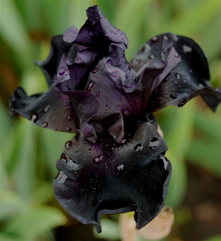 Nun eine geöffnete , vom Wind zerzausste und von Regen arg mitgenommene 'Cristal Glitters'