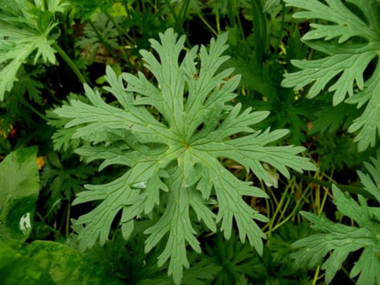 HalloKatrin,hier ist das Blatt-Bild.In die Kashmir-Richtung hatte ich auch schon gedacht, aber eigentlich bin ich mir sicher, daß das nicht passt.Ich überlege immer, ob es evtl. eine in Garten entstandene Hybride zwischen G. himalayense und G. pratense 'Striatum' ist. Der Sämling tauchte vor einigen Jahren direkt neben Letzterem auf, und G. himalayense steht 3m entfernt.