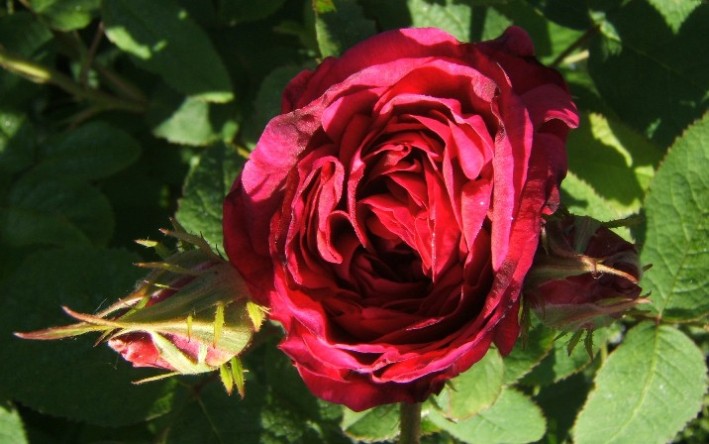 Es blühen auch schon viele andere, z.B. Boule de Neige, Penelope, Mutabilis, Manhattan Blue oder Sutter's Gold. Doch viele Blüten sind sehr angefressen und daher nicht fotowürdig.