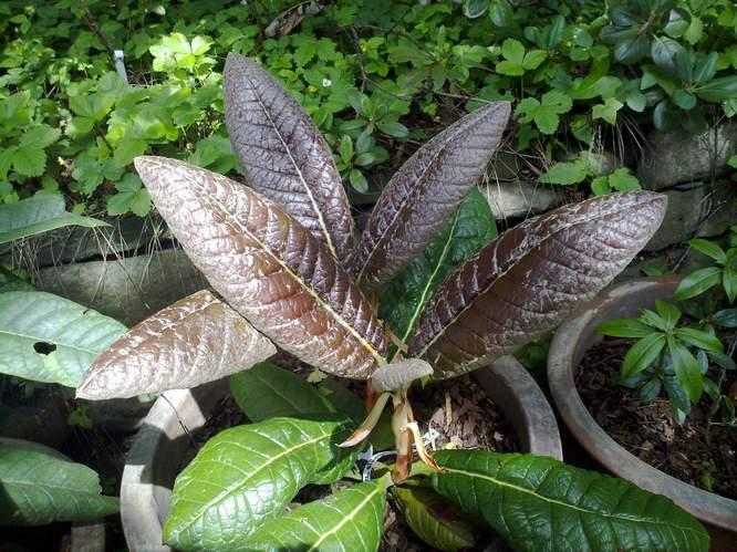 Neuerwerbung R.sinogrande CCHH8079 mit besonders schönen bronzefarbenen Austrieb.