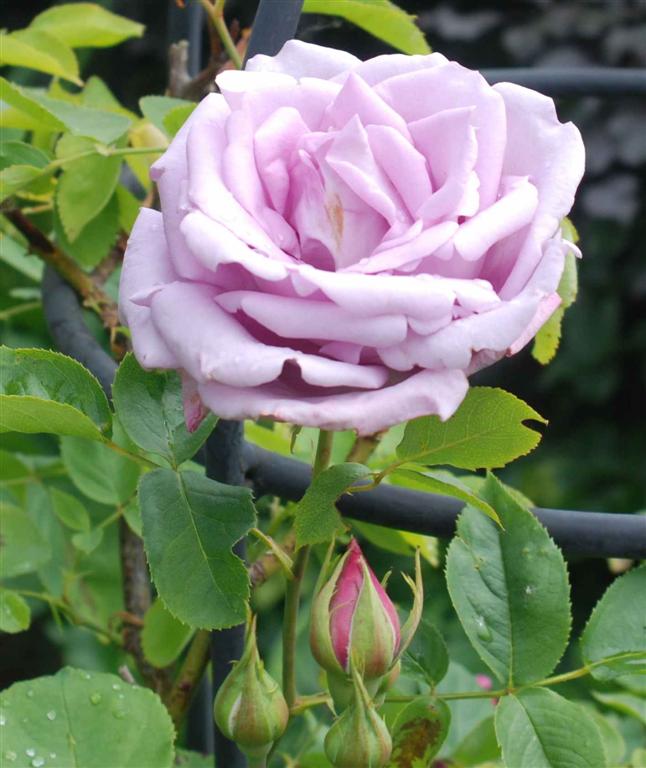 ... und da gibt es 1000 Meinungen, aber das ist Indigoletta. Und die ist wirklich nicht dieselbe wie Azubis, egal was manche Züchter sagen. Sie hat ein komplett anderes Wuchsverhalten, andere Blüten und Knospenform, alleine die Farbe ist identisch. Glaubt mir ich beobachte nun Beide schon jahrelang. Indigoletta kann man auch schön um den Obelisken biegen, das probier mal einer mit einer Azubis