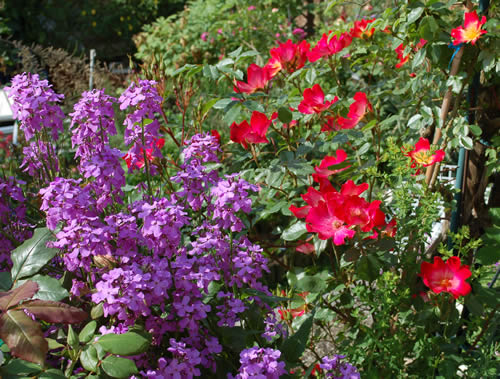 Ich mag die Kombination von 'Mme. Isaac Pereire' und Phlomis tuberosa. Das einzige Problem mit dem Brandkraut ist, dass es in meinem lehmigen Boden ziemlich viel Raum einnimmt. Es wird sicher 1,5 Meter hoch und die großen Blätter decken alles ab, was in der Nähe steht und kleiner ist.