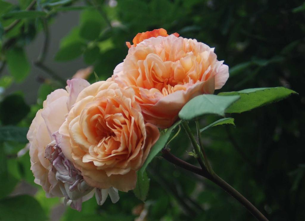 . Einmal die Farbe - rosa im gelbapricot Beet. Und die Annahme, dass sie mir über die Mauer hängen wird. Fehlgeschlagen. Es ist eine ganz aufrechte, etwas starre Rose, die sich auch kein bischen mit Runterbiegen aus ihrer aufrechten Haltung abbringen lässt.Davon abgesehen, eine sehr nette Rose.