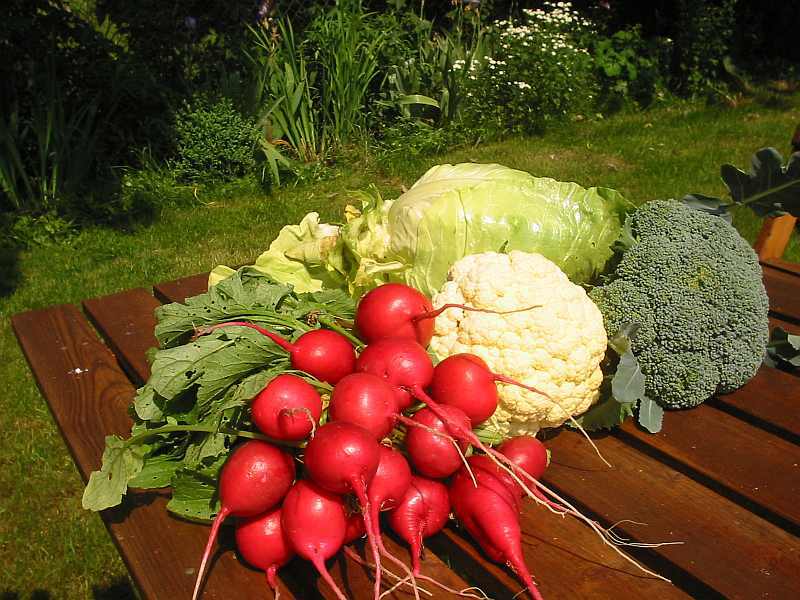 was für tolle radieschenDie Johannisbeeren fangen hier erst gerade an, Farbe zu bekommen.Gestern einen Riesen-Chinakohl und fette Kohlrabis und bunten Gartensalat samt Kräutern, heute die ersten Zuckererbsen direkt in die Gärtnerin hinein, kleinen Blumenkohl und Broccoli, einen schönen Spitzkohl und furchteinflößende Radieschen, die tatsächlich noch butterzart sind.